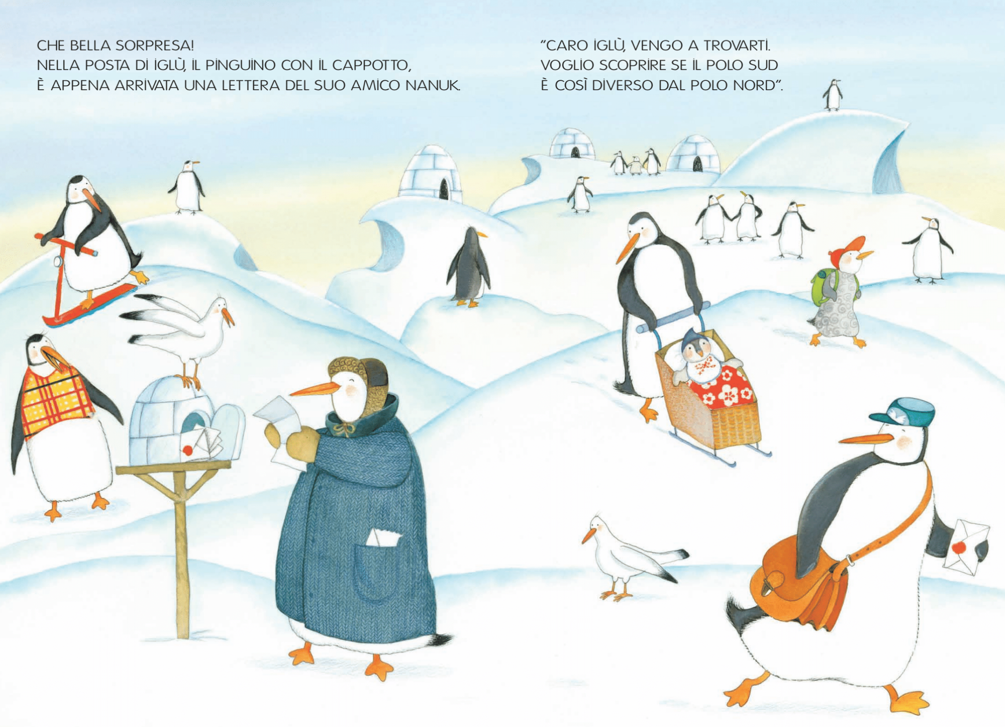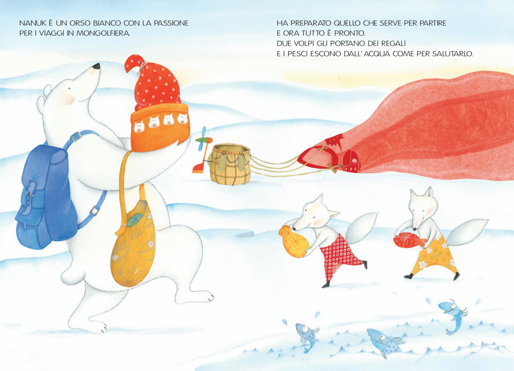 Nanuk is a white bear who lives at the North Pole and loves traveling by hot-air balloon. One day, he decides to embark on a grand adventure with a very special destination: the South Pole! He wants to visit his dear friend, Iglù the penguin. But how will the other penguins react when they see a giant white bear landing in their icy home? Through a series of unexpected turns, this sweet story reveals that behind a mountain of white fur hides a gentle heart, teaching children that trust is the first step toward a beautiful friendship.