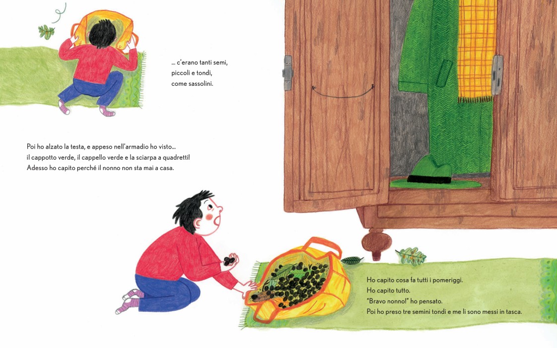 Through his grandfather’s telescope, a curious boy spots a mysterious man in a green coat dropping “pebbles” into cracks in the asphalt. The next morning, where cars once parked, trees begin to sprout. Oak, birch, and lime trees invade the grey streets, sparking joy in children and frustration in adults worried about parking. When the boy discovers his grandfather’s secret – a bag of seeds and a familiar green coat – he realizes the mission to regreen the world is now in his hands.