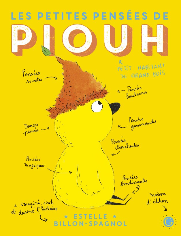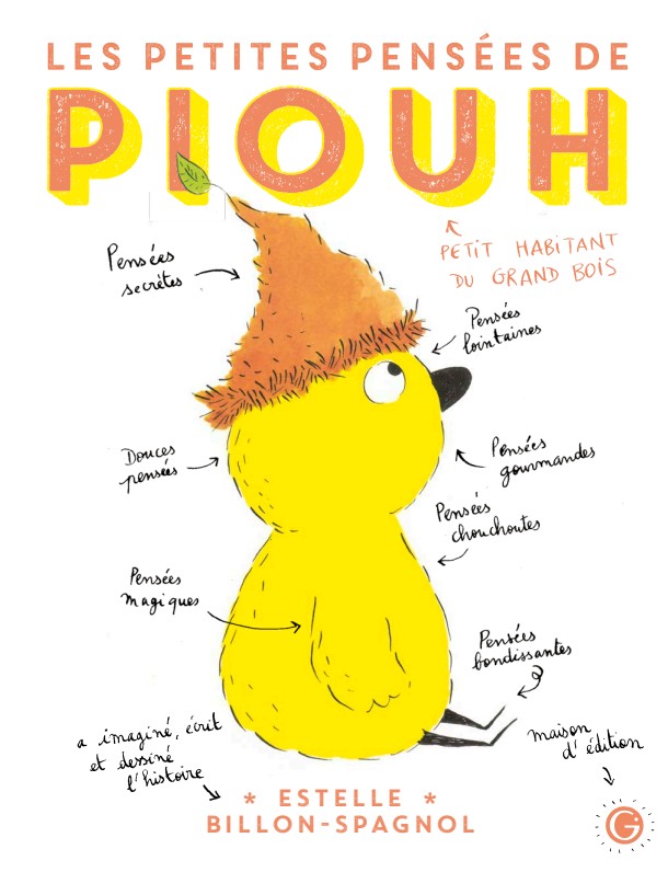 Humor and philosophy come together in these Little Thoughts, sunny and lighter than they first appear! A rich, playful, and generous album that happily reunites us with dear Piouh— still as touching and alert as ever— who has already won readers’ hearts with the success of the first book, Piouh, tiny inhabitant of The Great Woods, which has been translated into several languages.